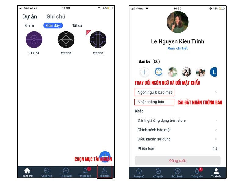 Với giao diện ứng dụng nhỏ gọn, cài đặt nhanh chóng. Bạn chỉ cần chọn mục “tài khoản” ở trên màn hình và thực hiện những cài đặt của bạn.